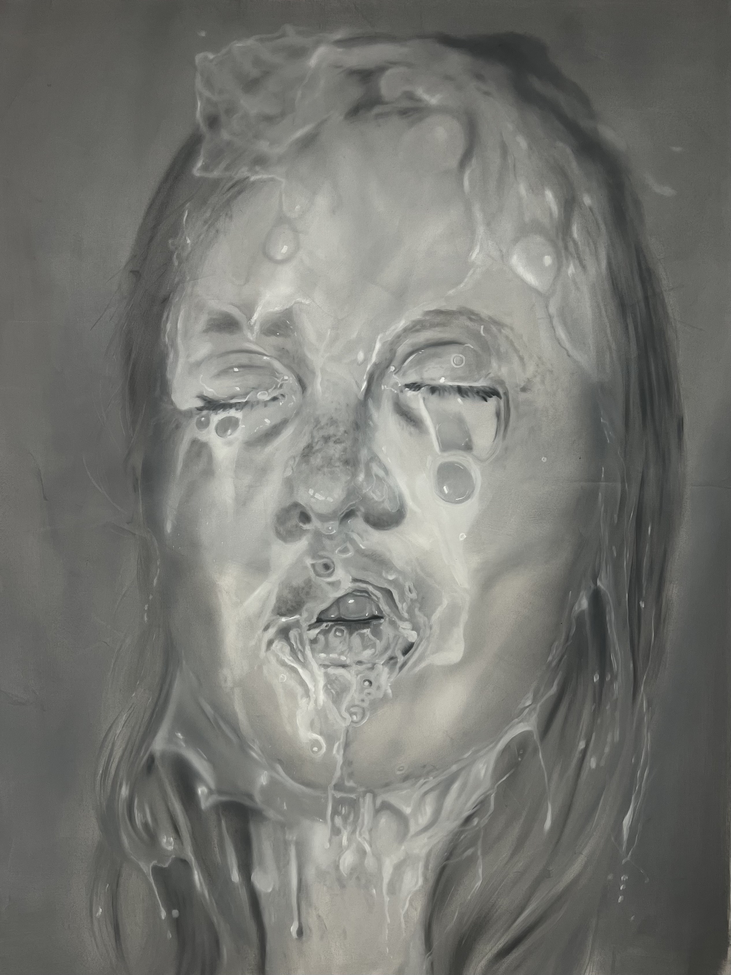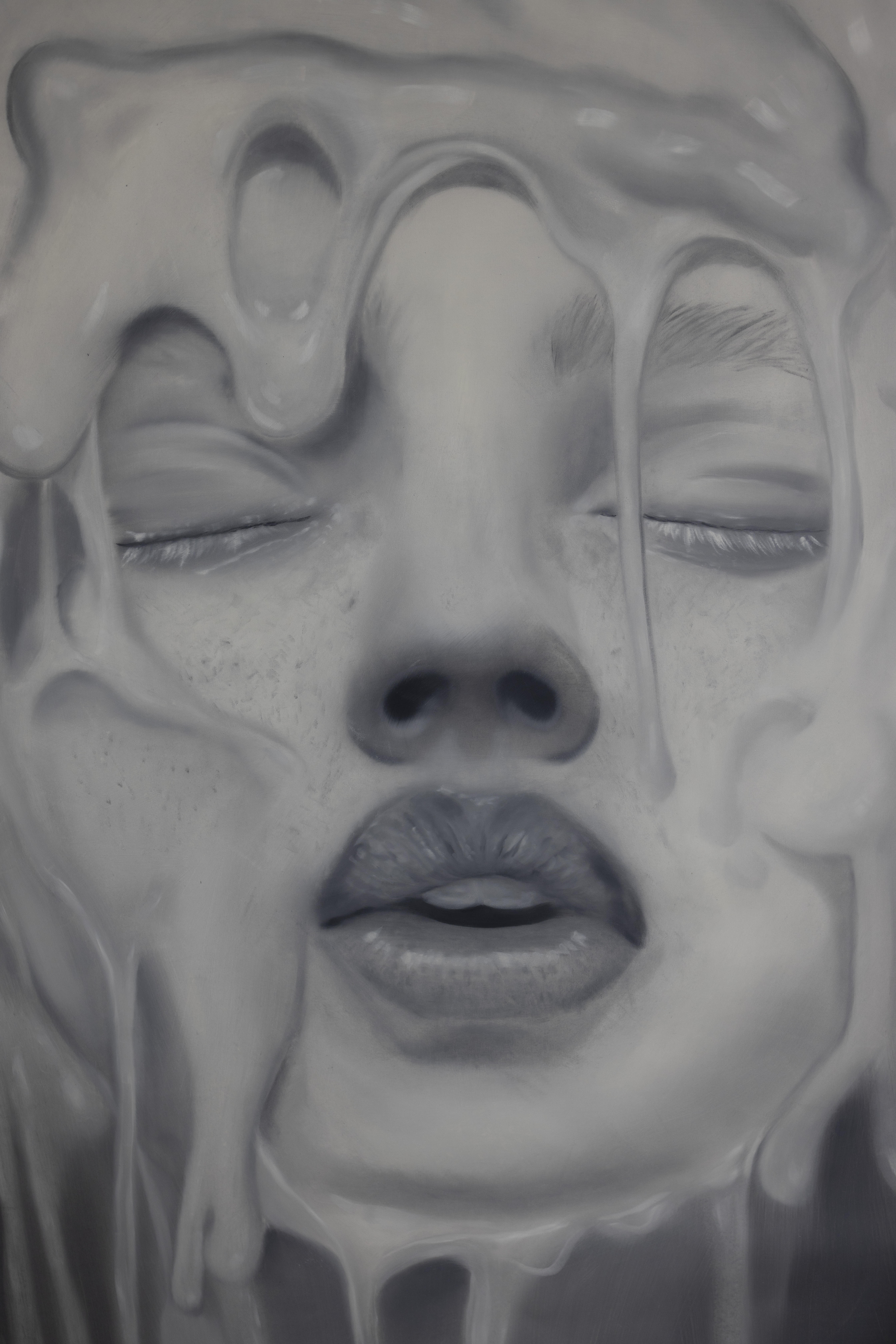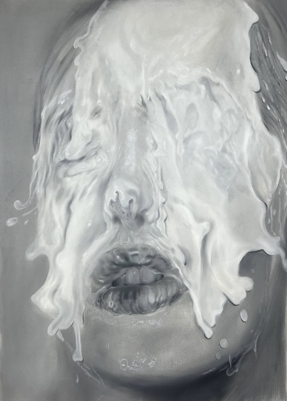 In my series of Liquid Portraits I go to the flow of time. Everything is in constant motion. We can only bow to it and accept it. In the acceptance lies the beauty. We grow older, we change. Decisions shape us. We live and die and tell our own story. These portraits are meant to connect to the pleasure of the beginning. They bring us to other thoughts. Thoughts about our own sexuality. To put it bluntly, they are portraits that fetishize milk but from the concept of mother’s milk that gives life. Further thought of the sperm that fertilizes. They are images dedicated to human existence, capturing the essence of life. The moment of emergence, the culmination of a fusion through love symbolizing detachment of form in the recovery of a portrait. Life is funny and full of special moments that crown their moments surrounded by sadness. All this shows me a face. That is why it is also the most fascinating for me to paint portraits. It is my study and tribute to life.